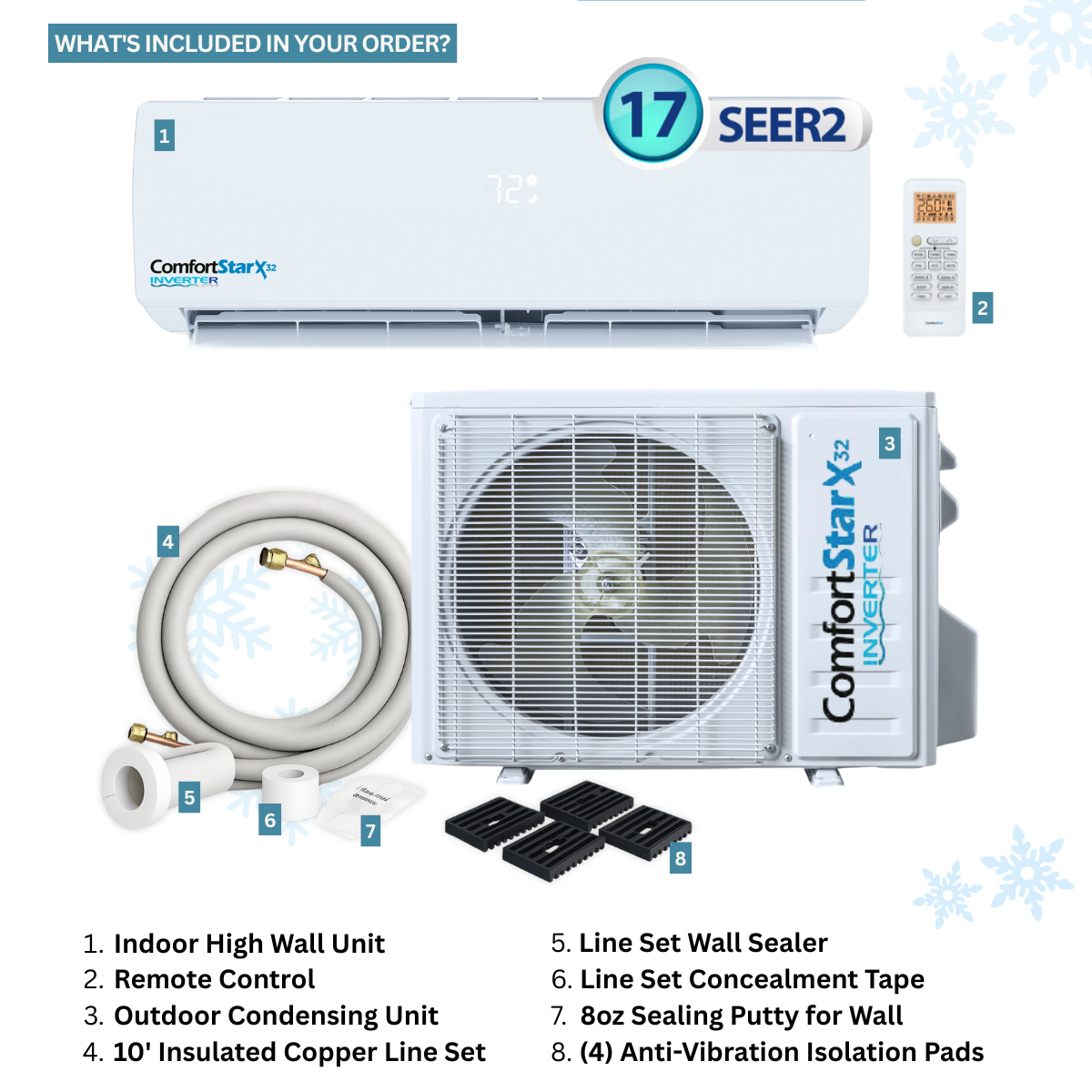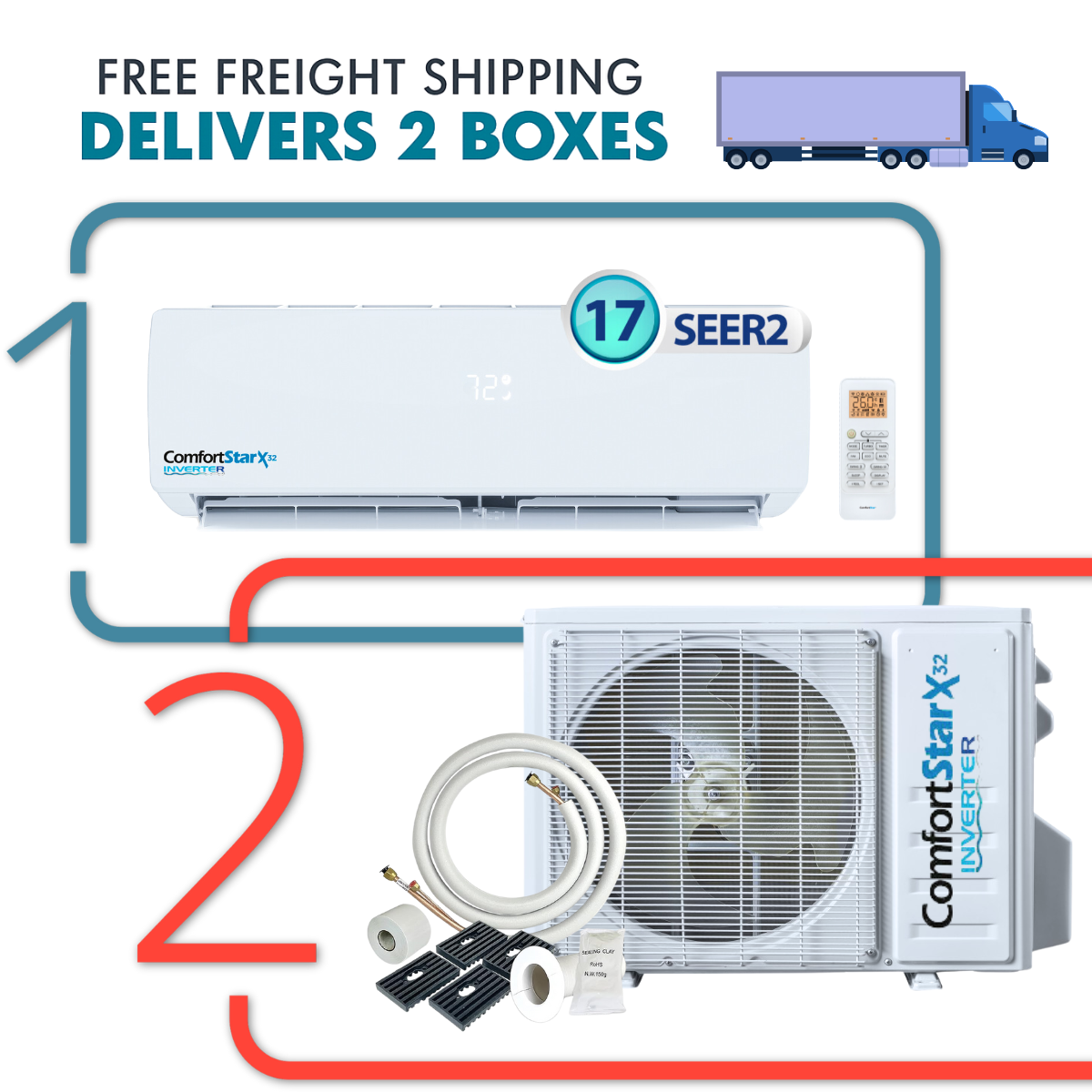 Placing an order over $49, qualifies for FREE UPS Delivery. Items over 100lbs shipped via semi truck, be sure to select "Lift Gate" to lower the product to ground curbside. Remote area surcharges may apply, see our full shipping policy for more details.❄️ High Efficiency Comfort – 17 SEER2: Enjoy powerful performance with energy savings built in—perfect for year-round comfort.