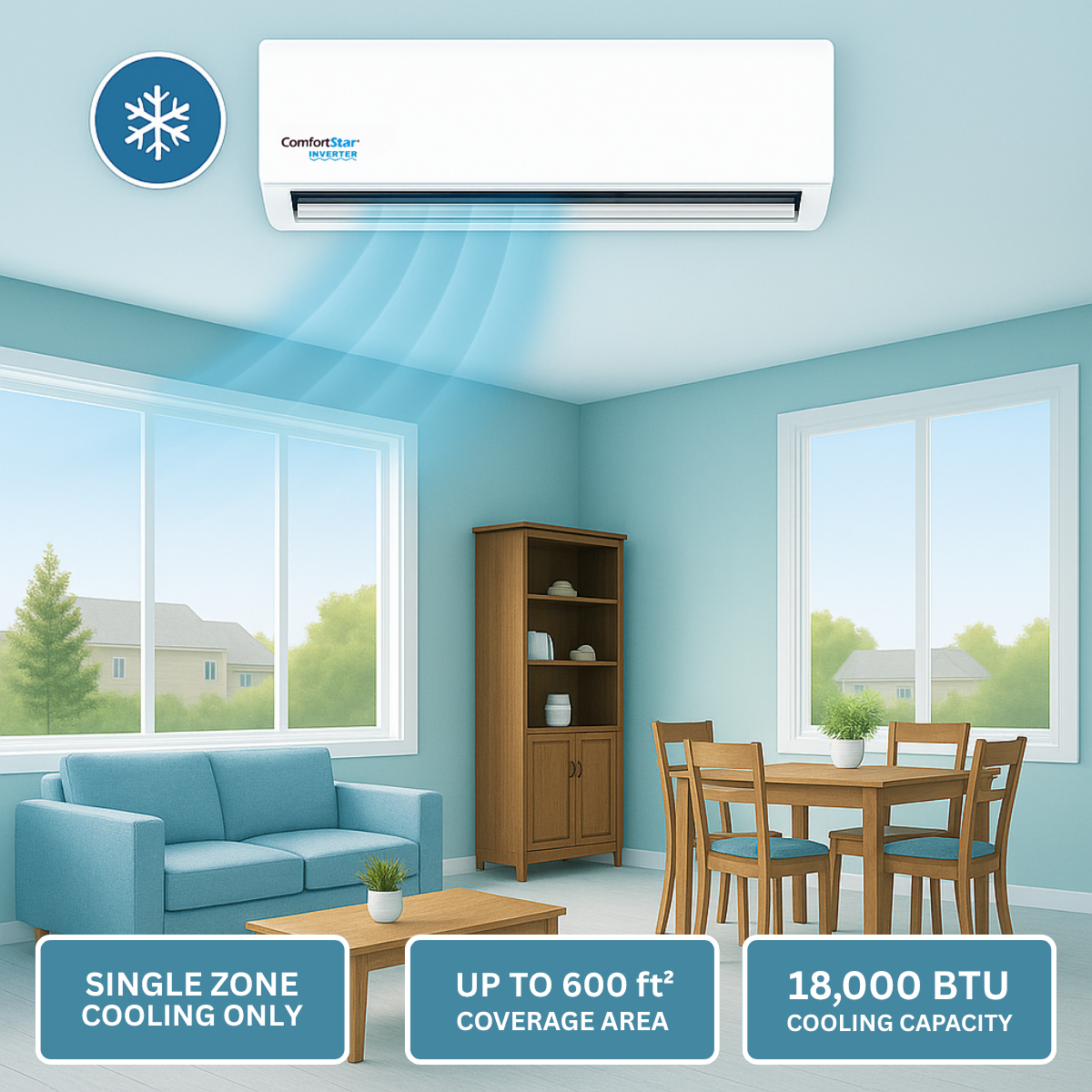 18,000 BTU Mini Split Air Conditioner – Wall Mounted, 230V Inverter, 22 SEER2 Energy-Efficient Cooling, WiFi Smart Control